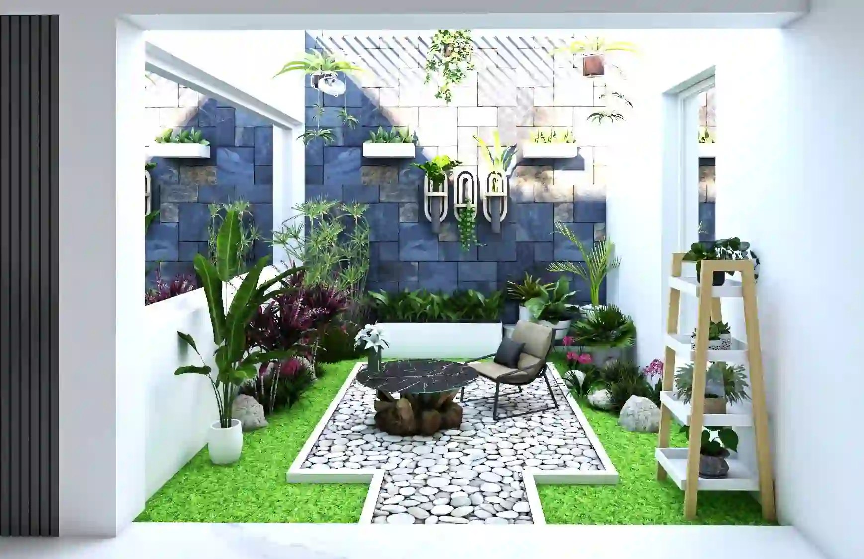 Decorating trends include bold patterns, textured walls, and biophilic elements like indoor plants. Use earthy tones and natural lighting to create a calming environment. Incorporate statement art pieces, textured cushions, and decorative glass elements for a modern yet inviting look.
