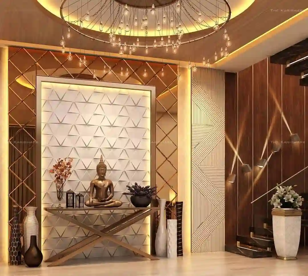 At Honey Craft Interior, our pooja unit designs blend tradition with contemporary aesthetics by using sleek wooden finishes, hidden storage, and ambient lighting. We create compact, wall-mounted, and floating pooja units that fit perfectly in modern living spaces, maximizing functionality without compromising spiritual sanctity. Incorporating elements like brass bells, glass doors, and intricate carvings provides a serene and elegant prayer corner that complements your home’s overall style.