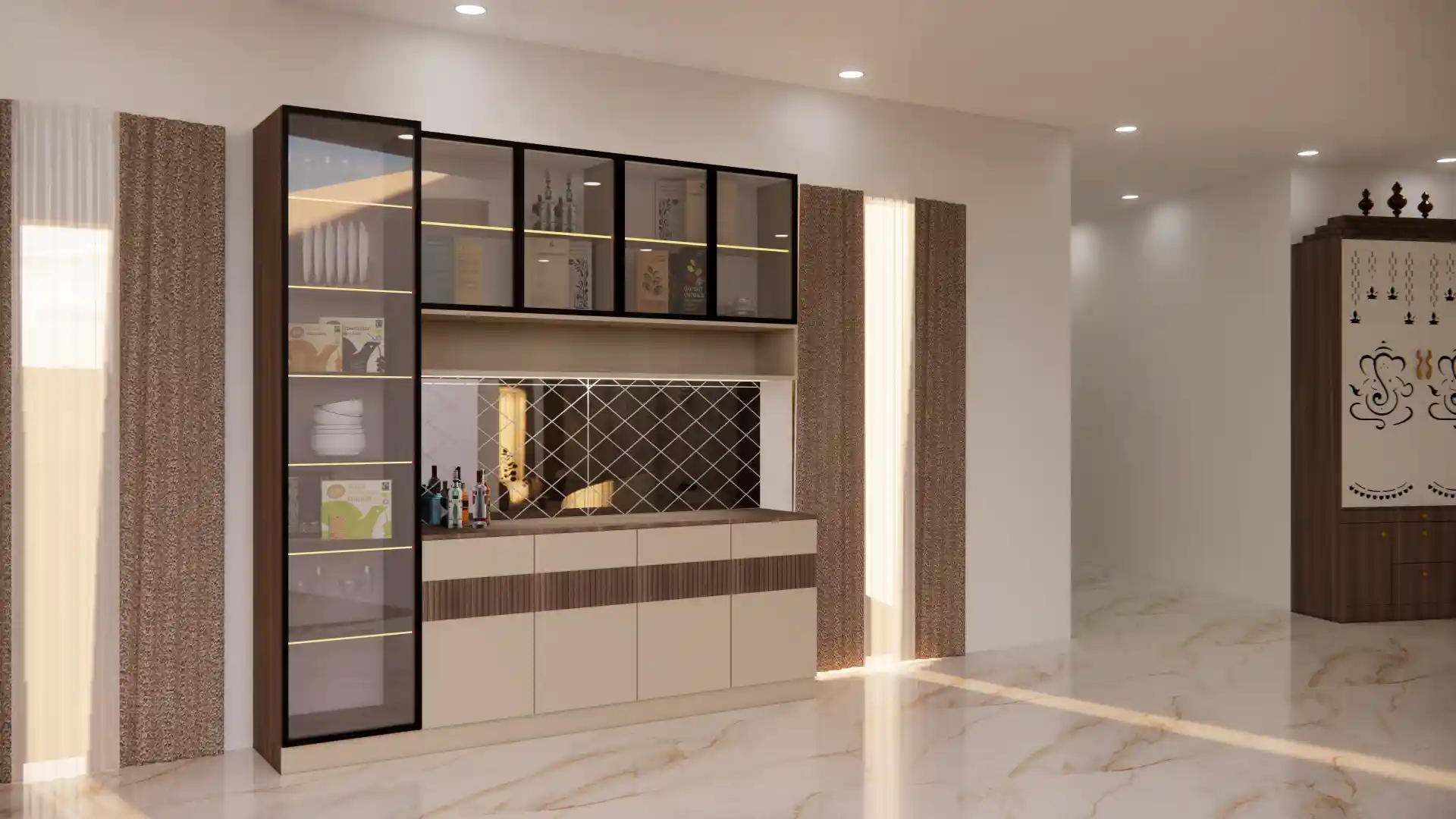 A modern crockery unit is a stylish storage solution for your dining or kitchen space, blending open shelves, glass cabinets, and closed drawers to display and organize your dinnerware Compact wall-mounted or corner designs save space, while premium wood or glass finishes add elegance and durability. Choose a unit that matches your decor for a clutter-free, functional, and visually appealing dining area.