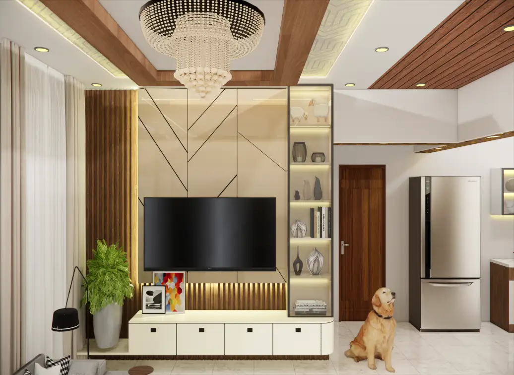 At Honey Craft Interior, we specialize in stylish and functional living room interiors with expertly chosen wall color combinations, modern false ceiling designs, and custom modular TV units.